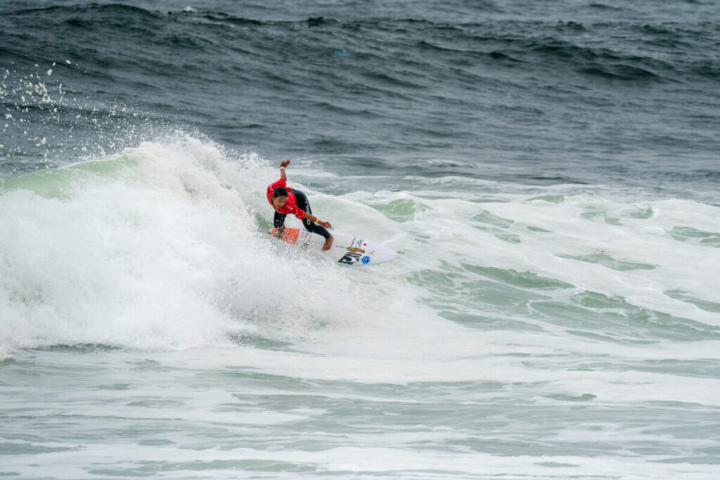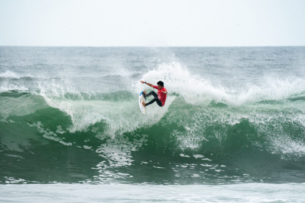 バックアップスコアがなかなか伸びず、ミスも重なり焦りが見えたものの、終盤でしっかりと波をキャッチ。そのライディングが逆転スコアとなり、見事ラウンドアップを果たした。厳しいコンディションの中でも勝負強さを発揮した一本だった。