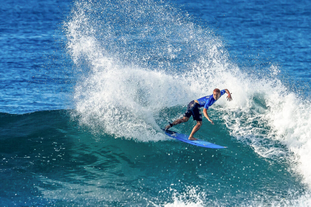 最後に登場したのは大原洋人選手。オープニングで 6.50ポイント を獲得する好スタートを切りました。しかし、その後はプライオリティが4番のまま約6分を過ごし、必要な 3.93ポイント のライディングを出せず。結果的に1本しか波に乗れず敗退となりました。