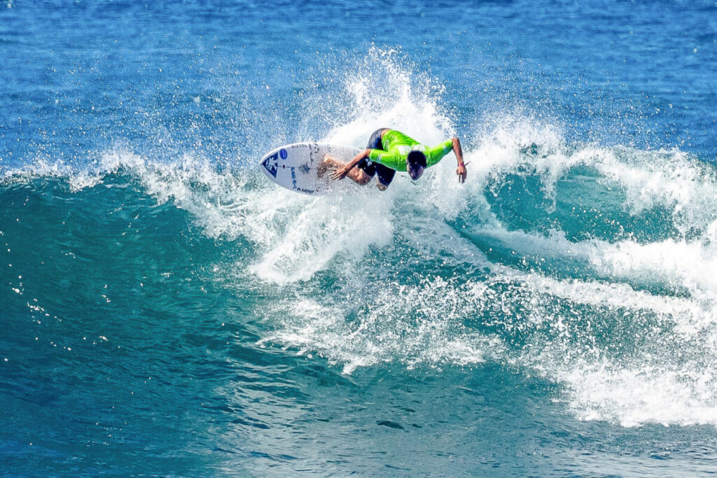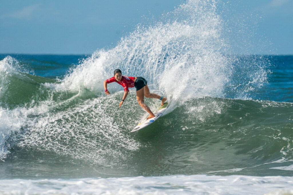 1本目は早い段階で波を掴むもダンパーで得点はつかず。2本目は小ぶりながら形の良いライトの波に乗り、リズムを掴みかけましたが、最後のフィニッシュを決められませんでした。その後はレフトで2本乗るも 3.33、3.93 とスコアは伸びず、波にも恵まれずヒート終了。惜しくも敗退となりました。