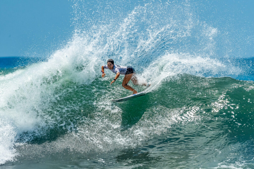 昨日からサイズアップし、朝はオフショアのクリーンコンディション。メイン会場のボカーナで行われた女子リパチャージ8・ヒート1に都築虹帆選手が登場しました。