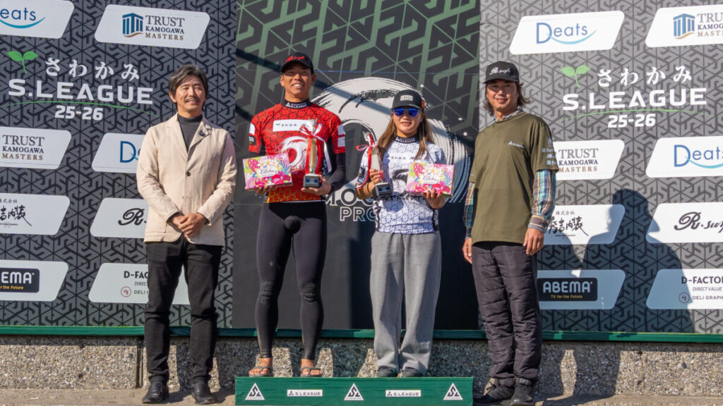 千葉県鴨川市東条海岸(マルキポイント)にて開催されたJPSA さわかみ S.LEAGUE 25-26《S.ONE》第3戦「鴨川プロ」は大会最終日を迎え、全日程を終了した。コンディションは次第にサイズダウンし、限られた波をいかに有効に使えるかが勝敗を大きく左右する展開となった。