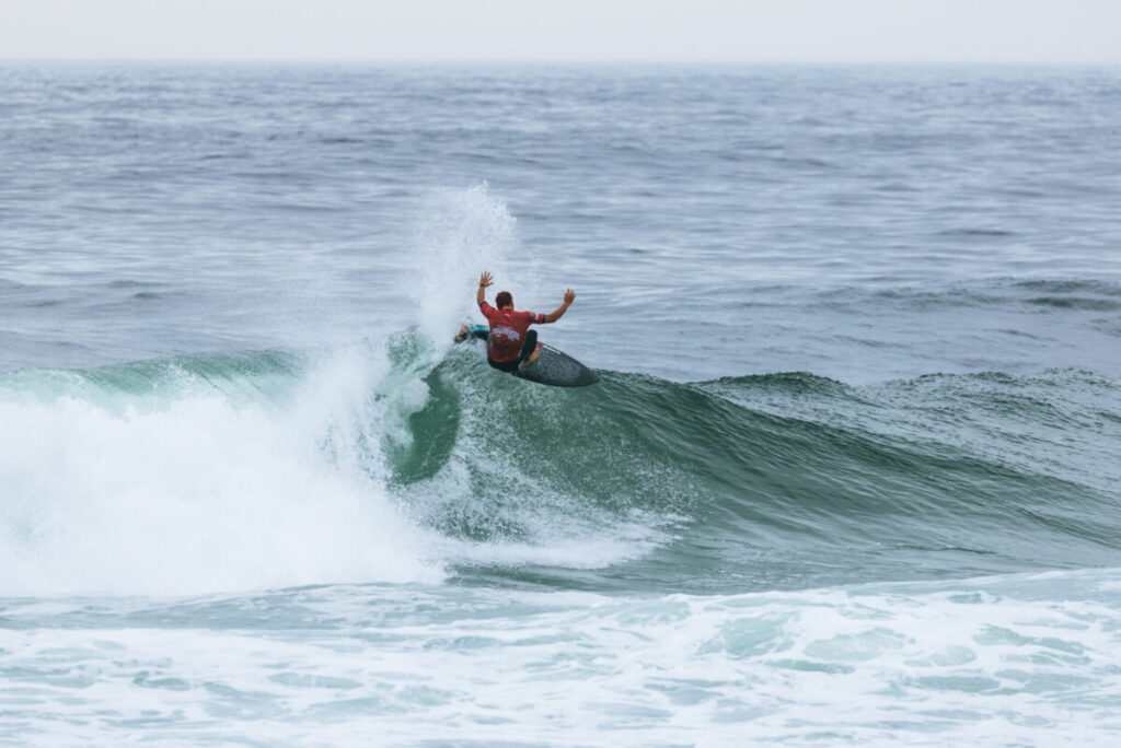さらに8分にはリズミカルな2マニューバーで5.00ポイントを加点し、序盤からリードを奪った。中盤に2位へ後退するも、残り10分で入ったセットを掴むと、深いボトムターンから力強く当て込み、インサイドでフィンを抜くリエントリーをメイク。これが6.23ポイントとなり、トータル12.06で再びトップへ浮上。リードを守り切り、1位通過でラウンド・オブ・16へと進出した。