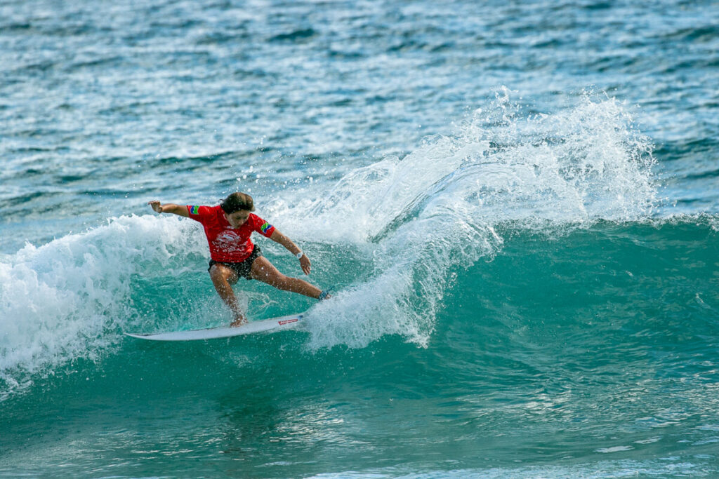 ウィメンズファイナルは川瀬心那と芳田花瑚の対決。普段から遠征をともにする仲の2人だが、この日は互いに譲らぬ真剣勝負となった。川瀬は開始直後に5.50をスコアし、主導権を握ると、冷静にプライオリティをコントロールしながら試合を支配。トータル9.33で勝利を収め、徳之島での2連勝を達成した。「大好きな徳之島で勝てて本当に嬉しい。地元のみなさんの声援が力になりました」と笑顔を見せた。