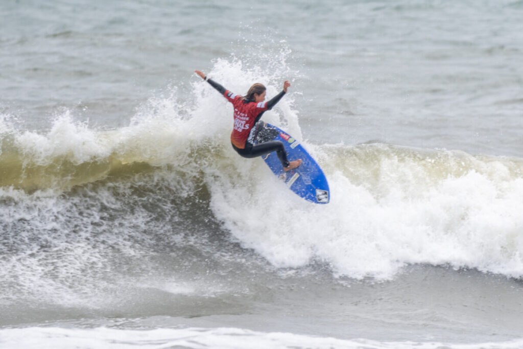 波乗りジャパン勢が顔を揃えた女子ショートボードのセミファイナルでは、ジュニアの石田海夏と馬場心が登場。ここまでの快進撃は評価に値するものの、この日の難コンディションでは経験値が勝敗を左右した。結果は野中美波と川瀬心那が順当に決勝へ進出する。