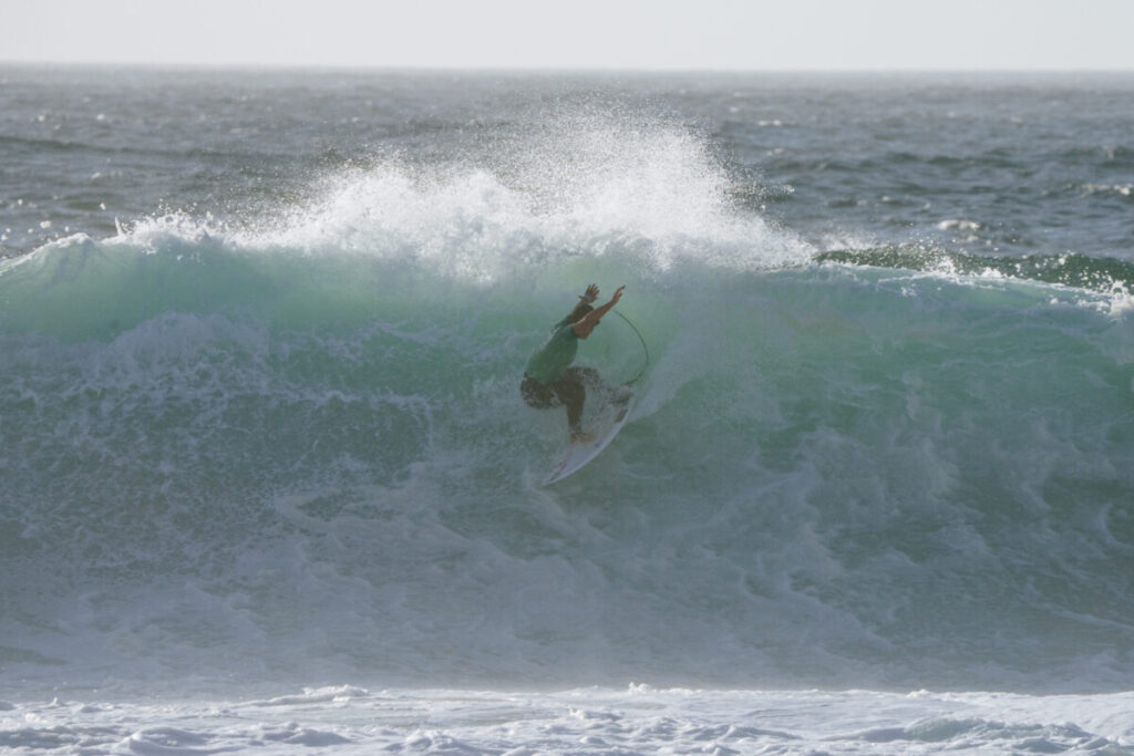 残り3分、レフトへテイクオフするとスピードをつけたボトムターンからトップでパワーハック。4.53をスコアし再び2位へ浮上する。だが残り1分、4位の選手が7.23をマークして2位へ。都筑は押し出される形で3位となり、そのままヒートは終了。今大会は17位でフィニッシュとなった。